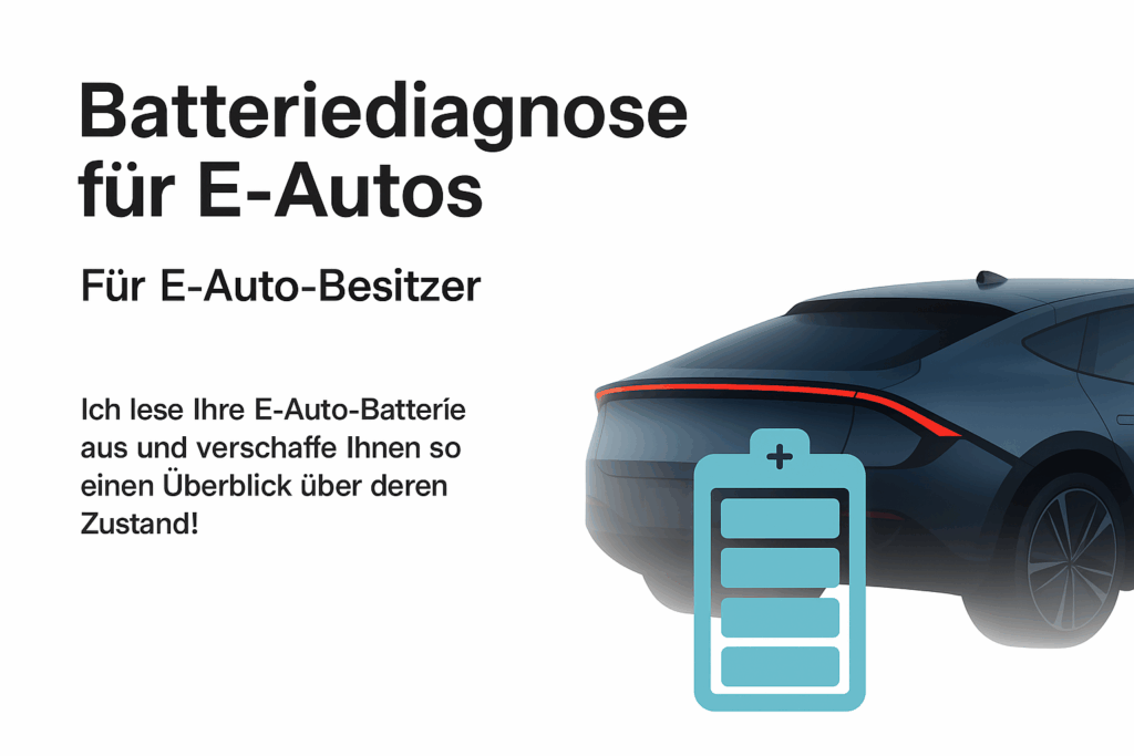 Sie fahren ein Elektroauto und möchten wissen, wie es Ihrer Batterie wirklich geht? Ich lese die wichtigsten Parameter Ihrer E-Auto-Batterie aus – direkt vor Ort in Bruneck. So bekommen Sie einen transparenten Überblick über: